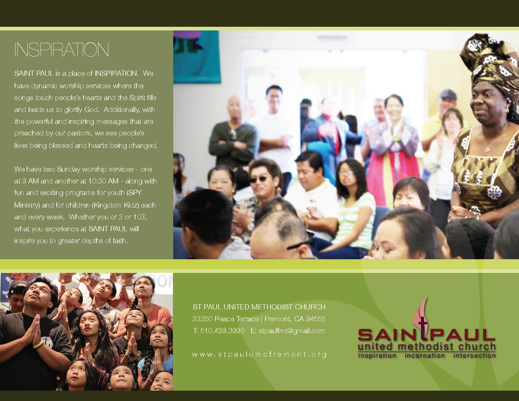 We are ST PAUL United Methodist Church, the place of INSPIRATION, INCARNATION, and INTERSECTION…